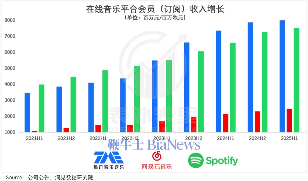 二季度,Spotify、腾讯音乐(TME)、网易云音乐集体迎来订阅用户增长,其中TME付费用户突破1.244亿人(同比增长6.3%),网易云订阅收入15.2%的涨幅也主要系“会员订阅规模拉动”。