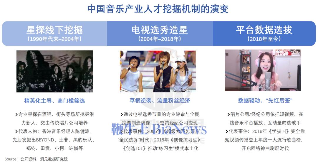 这催生了有“避险”性质的电视选秀——观众喜欢谁就签谁,直接跳过试错那一步。后来,网络歌手足不出户就能录歌、不费一子就能收获粉丝,平台数据又成了新时代“星探”,带来更高效的“先红后签”。