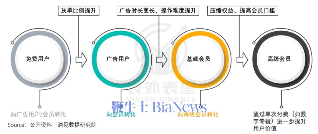 在此基础上,进一步通过用户分层运营,最大化榨取每一首歌、每一个用户的“价值”。